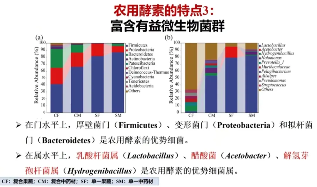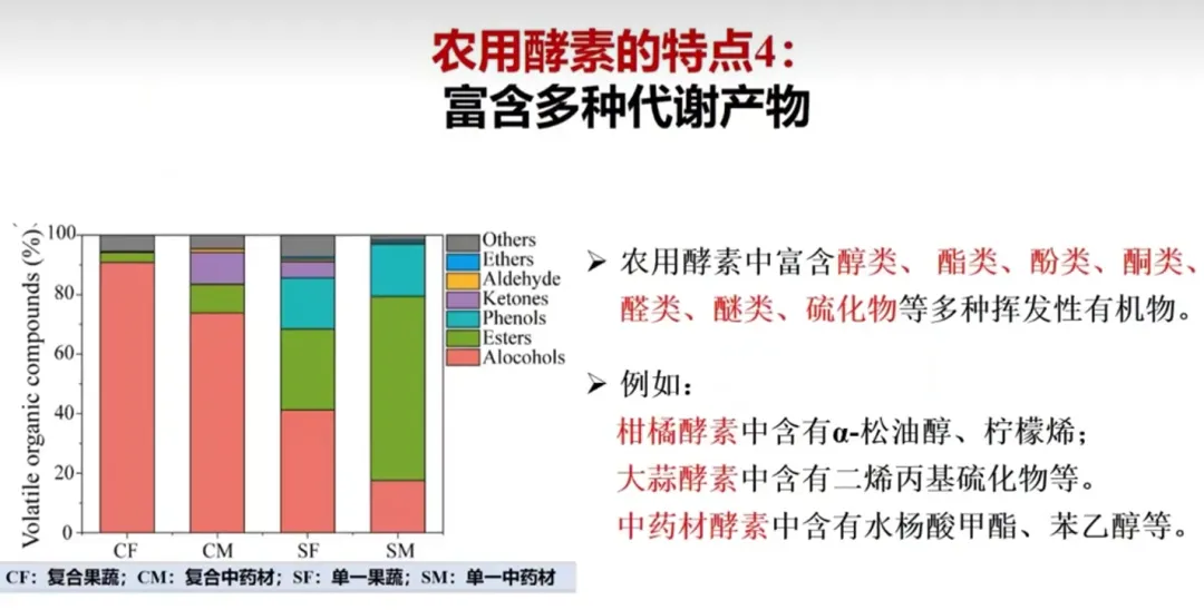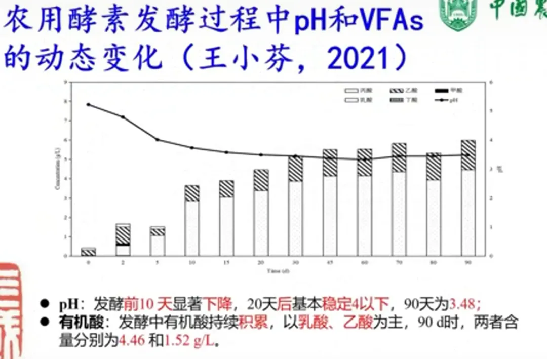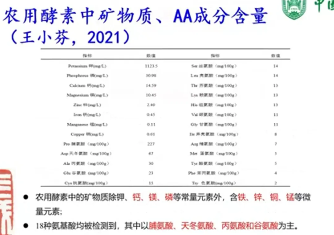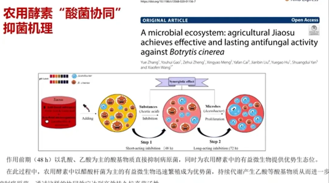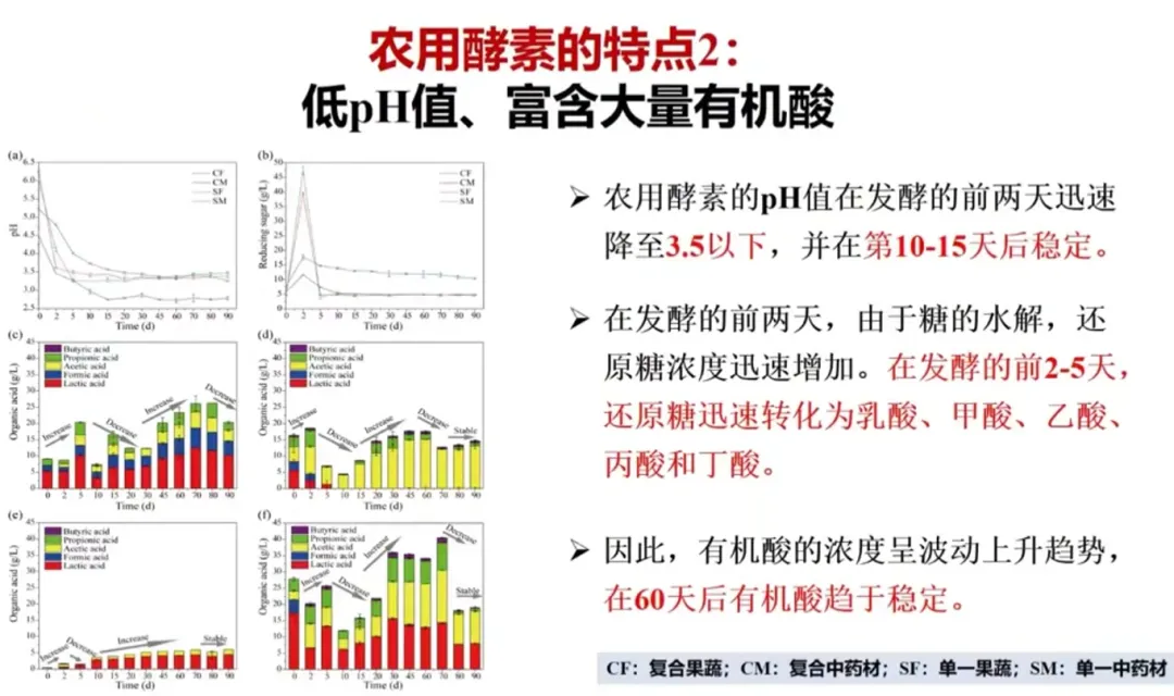 农用酵素是蔬菜瓜果等原料在厌氧的条件下,乳酸菌利用原料中的糖转化成大量的酸,经过三个月以上发酵形成的富含有机酸、有益微生物、微量元素、植物天然激素等等成分的即复杂又稳定的微生物生态系统。