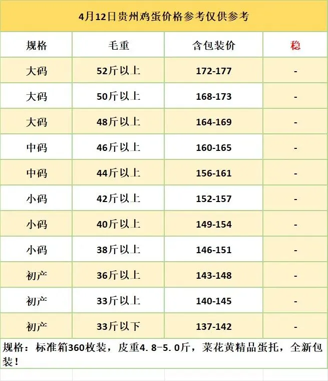 4月12日贵州鸡蛋价格参考