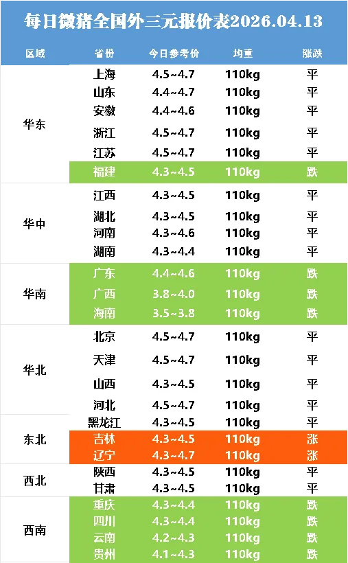 明日最新猪价2026.04.13点击蓝字关注 猪价不错过