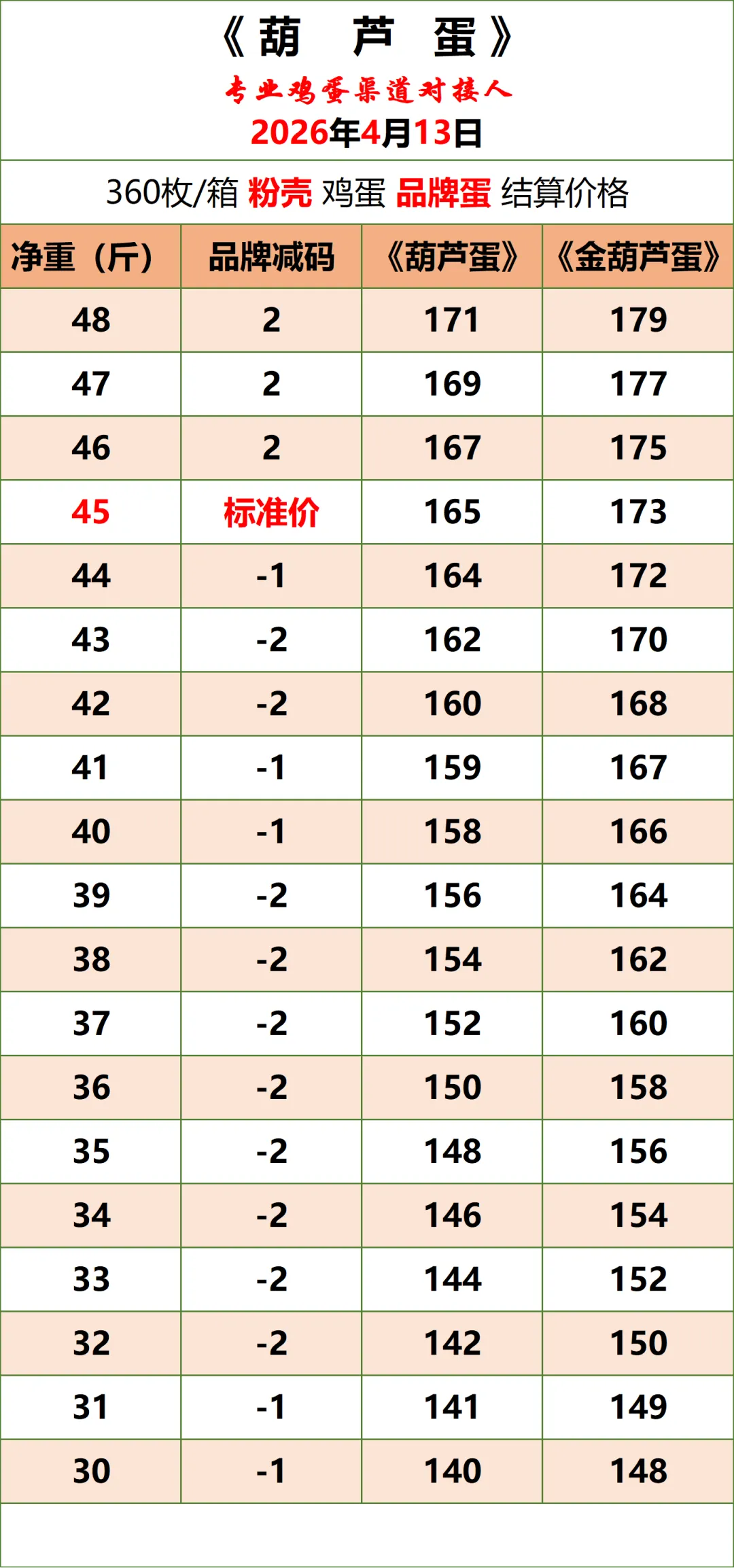 2026年4月13日《葫芦蛋》鸡蛋价格