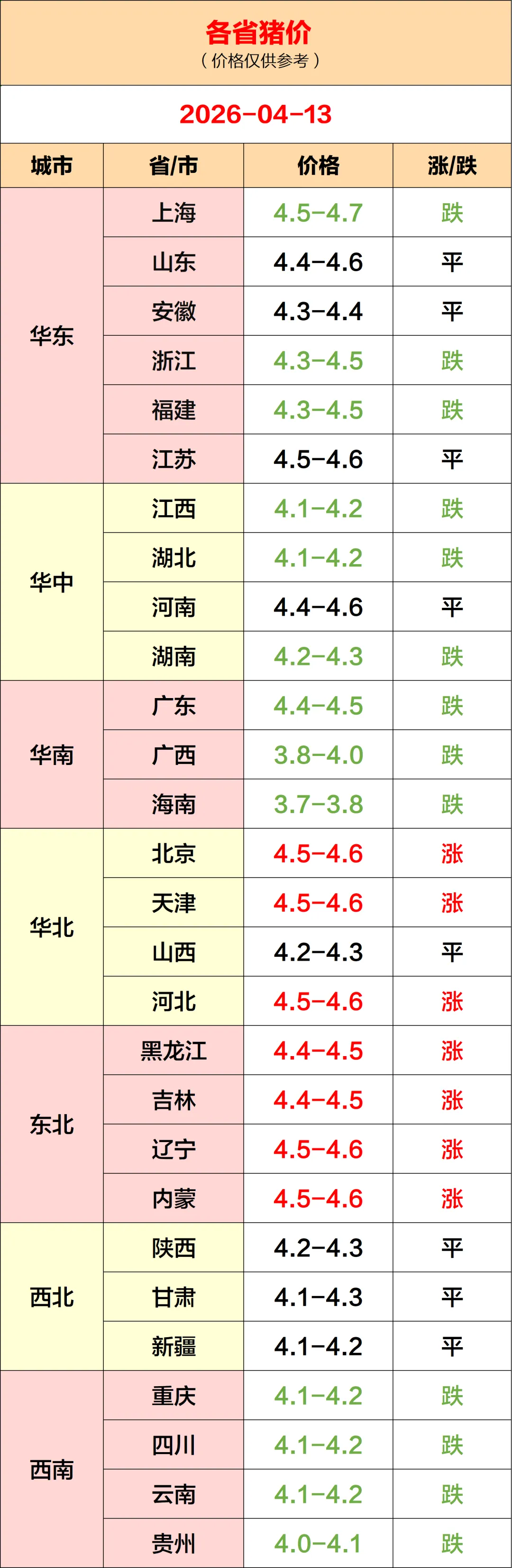 今日猪价(2026.04.13)