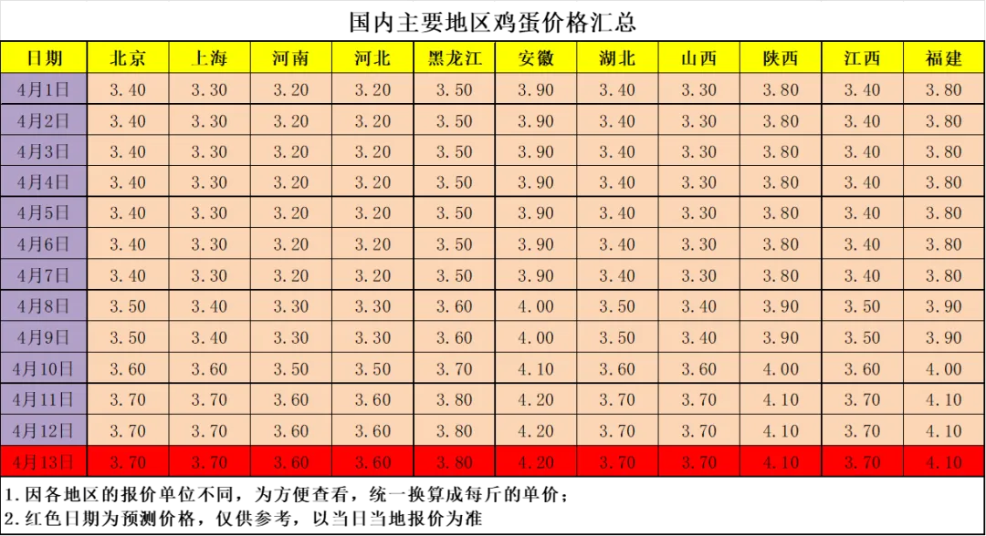? ? 鸡蛋预测价格仅供参考,实际价格以当地当日的报价为准。