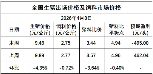 发改委发布4月第2周猪粮比及猪价情况,猪价继续创新低,生猪养殖头均亏损约500元