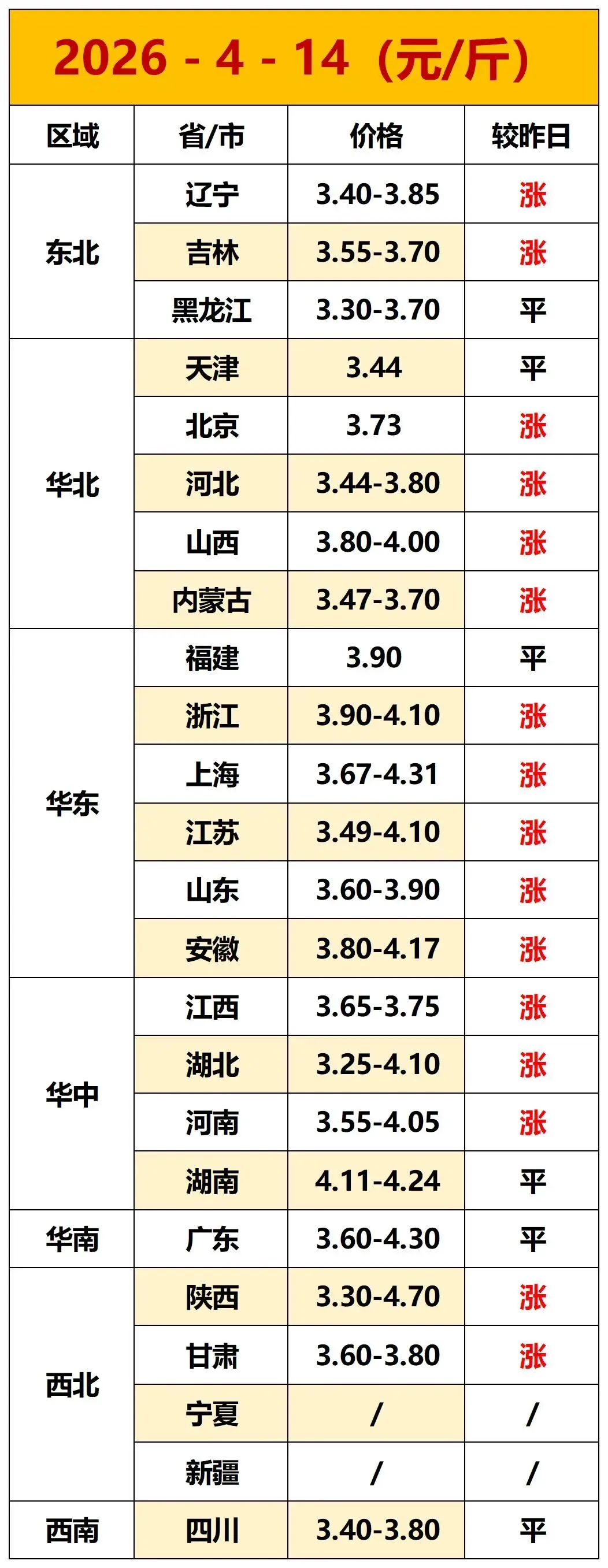 蛋价日评:今日鸡蛋价格上涨。局部地区因五一节前备货提前启动,走货加快、库存偏低。但在产蛋鸡存栏仍处高位,换羽鸡陆续开产,供应压力制约涨幅。养殖端接近盈亏平衡,饲料成本提供底部支撑。预计短期蛋价将维持震荡偏强。