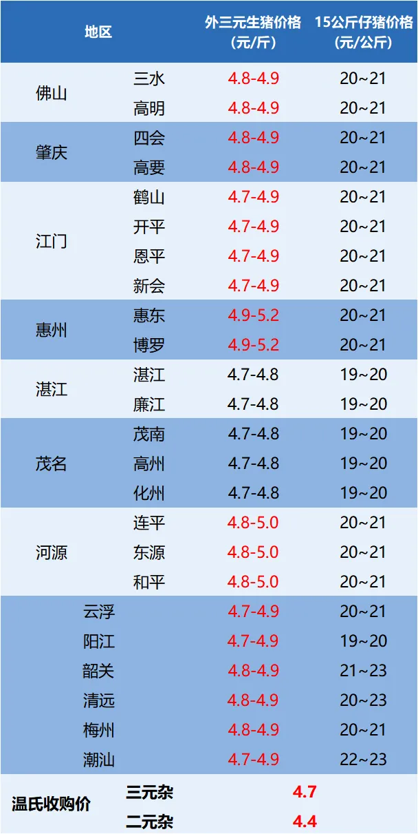 今日广东省外三元、15公斤仔猪价格