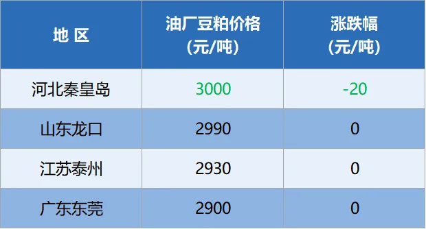 今日全国重要地区油厂豆粕(43%蛋白)价格