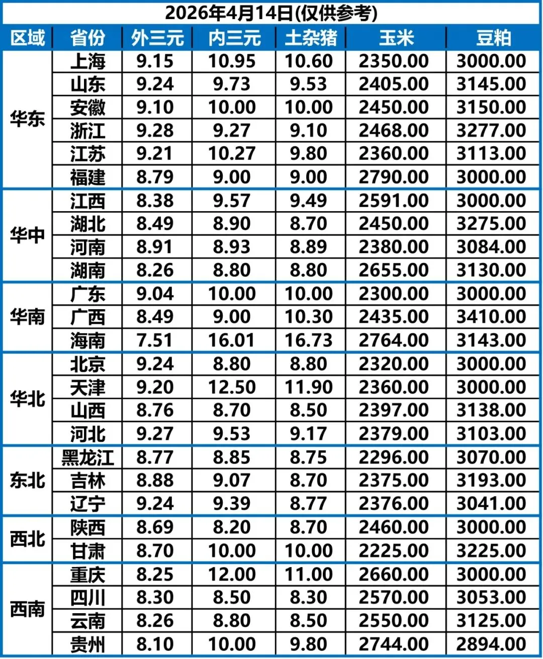 4月14日 | 正业生物猪价快报!