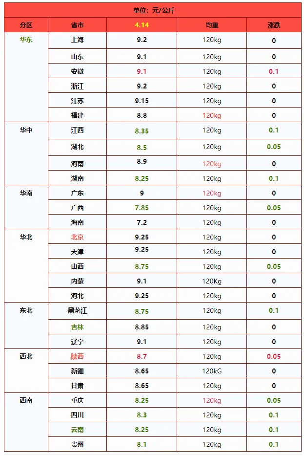 据屠宰企业调价,预计4月14日外三元标猪出栏均价为8.64元/公斤,较前一日微跌。整体来看,市场多空交织: