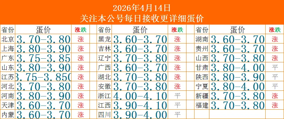 今日鸡蛋价格行情(2026年4月14日涨价)蛋价未来15天预测