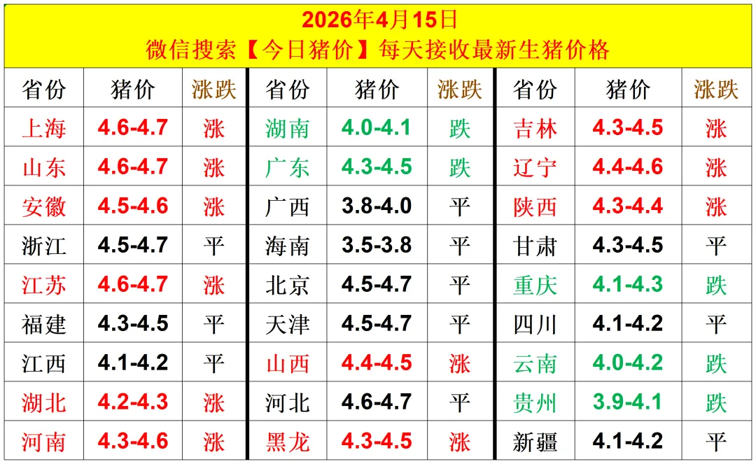 今日猪价|明日猪价2026.4.15(仅作参考)