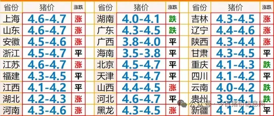 明日猪价!上涨!2026.4.15全国各地生猪价格 养羊网 2026-04-14 明日猪价!上涨!2026.4.15全国各地生猪价格帮忙点个赞!创作不易麻烦点个赞支持下!谢谢您!【老鼠药】特效老鼠药, 一只沾上一窝死亡,正规手续 彻底消灭老鼠!杀蝇饵剂—苍蝇药、养殖场专用灭蝇药,斗霸、圣高手、吻别、小火龙,飞爬丁等各种苍蝇药 养羊网 2026-04-14 上一篇:2026.4.14日鸡蛋价格上涨 下一篇:全国各地明日猪价(2026.04.15)-山里香惠营 您可能还会对下面的文章感兴趣111: 相关文章 2026 . 1 . 20 猪价早知道 【有涨】 蛋价早报(4月13日)鸡蛋价格 近期价格更新!!! 2025年4月13日全国各地生猪价格信息