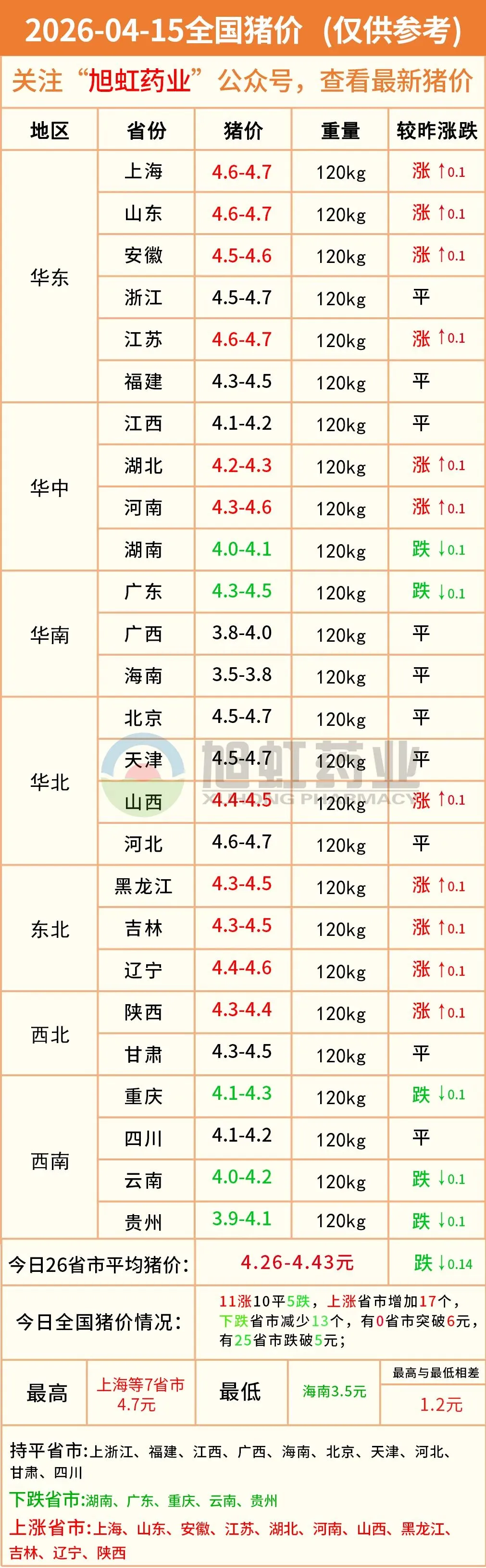 明日猪价——2026年04月15全国生猪价格! 养羊网 2026-04-14 明日猪价——2026年04月15全国生猪价格! 养羊网 2026-04-14 上一篇:涨价26.04.15猪价 下一篇:猪价一览|2026年4月15日 (明日猪价早知道) 您可能还会对下面的文章感兴趣111: 相关文章 2026.2.10全国鸡蛋价格最新报价行情参考,2.10鸡蛋价格今日价全国走势 二本毕业生的六年收入(12份工作) 近期价格更新!!! 生猪期货在跌,猪肉板块在涨,妥妥的反人性