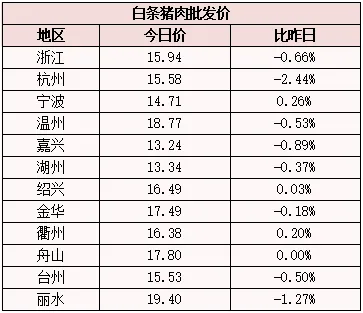 二、浙江省白肉批发价 据浙江放心肉商情网样本屠宰企业监测数据统计 (单位:元/公斤)