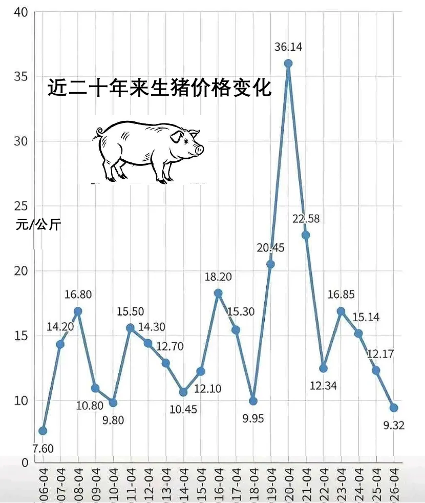 猪价高→补栏狂热→10-12个月后集中出栏→供过于求→价格暴跌→去产能→猪价反弹,周期3-4年,涨跌剧烈,但“蛛网模型”从未失效。