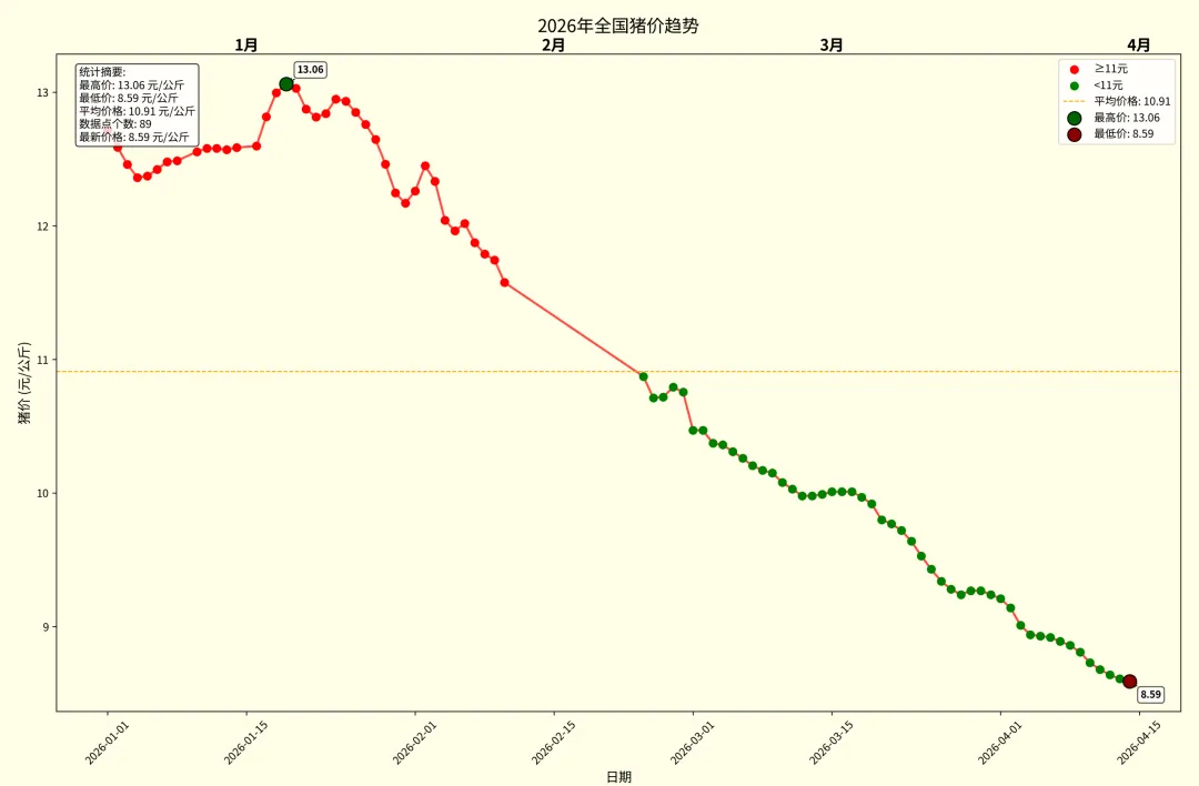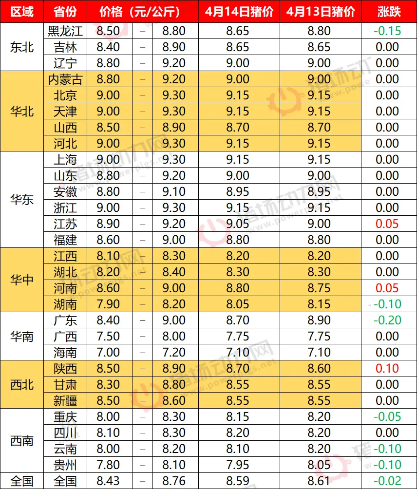 4月14日全国猪价稳中偏弱【动力猪价】