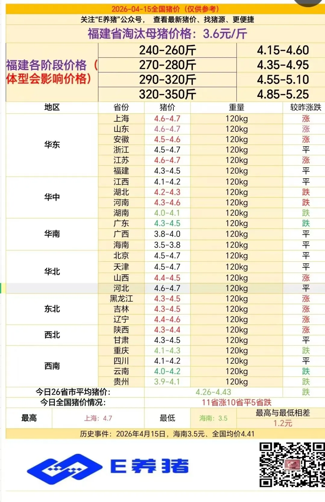 2026年4月15日猪价(预期转好)每日新增淘汰母猪价格、全国30天均价走势