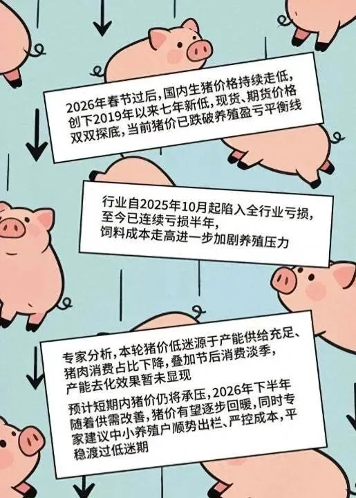 4月初查到的数字吓人:生猪均价9.23元/公斤,比饲料钱都低一大截;猪粮比只剩3.8:1,正常该是6:1才不亏;养一头猪平均倒贴310块。我问过老家养猪的表叔,他说现在卖一头亏一头,但栏里还有两千多头等着出,不敢全清,怕清完下个月更没收入。
