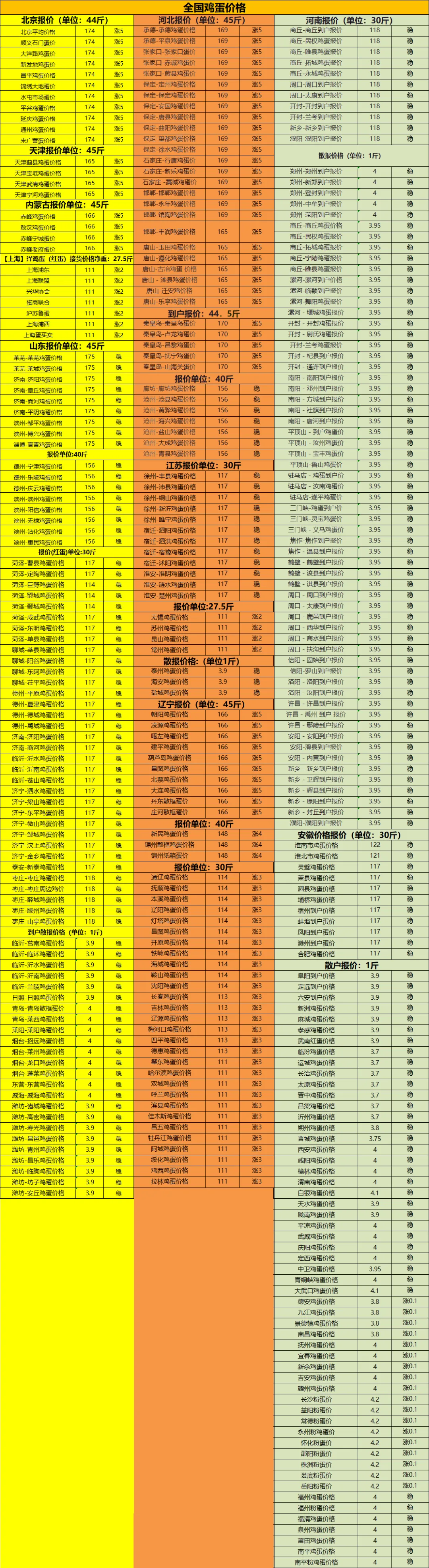 4.15全国鸡蛋价格 养羊网 2026-04-15 4.15全国鸡蛋价格 养羊网 2026-04-15 上一篇:2026年4月15日 湖北文燊蛋业鸡蛋价格 下一篇:涨!2026年4月14日鸡蛋价格早报:前扑后勇,扶摇直上 您可能还会对下面的文章感兴趣111: 相关文章 2025年4月13日全国各地生猪价格信息 快乐养殖提醒您关注2026/4/2猪价 离职小牛饲养员,我终于不用再送小牛去死了 不知道为什么这么多人迷地雷装 真的很恶心,