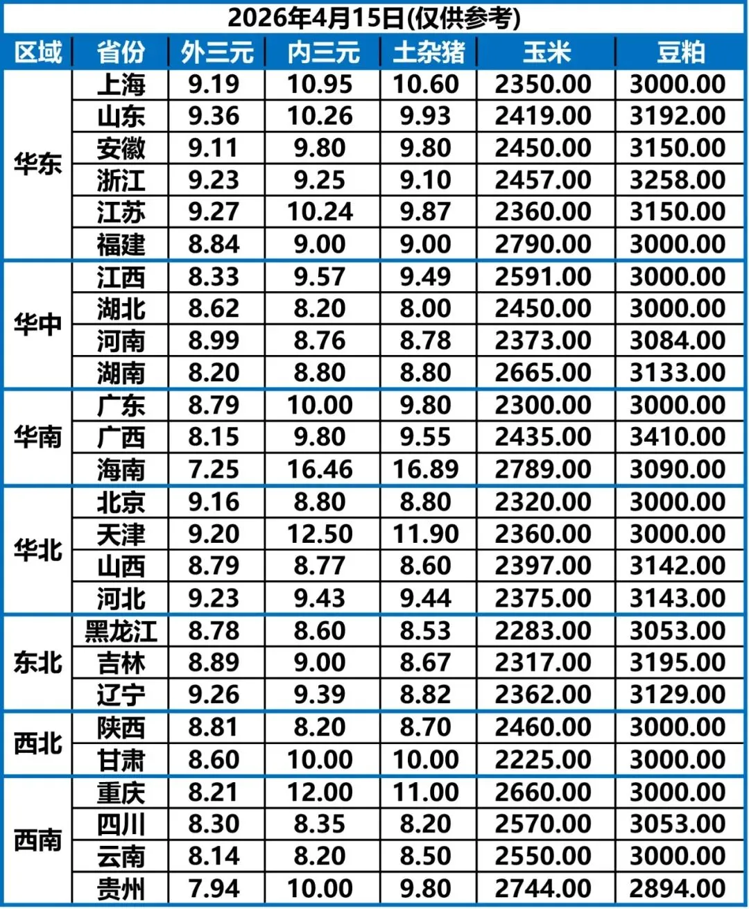 4月15日 | 正业生物猪价快报!