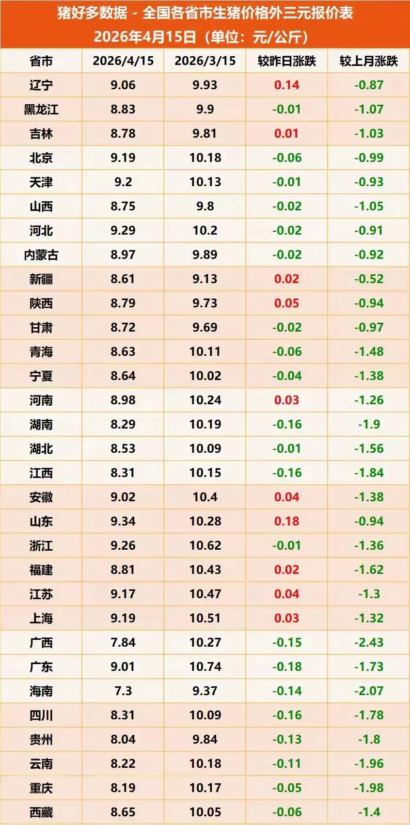 对于广大养猪从业者而言,当前生猪市场的走势始终牵动着行业神经。近日,农业农村部发布最新市场监测数据,释放出猪市深度调整的全新信号,4月第2周国内生猪、猪肉价格跌势进一步扩大,而仔猪价格下跌节奏却有所放缓,市场行情呈现出明显的分化走势,背后折射出行业供需格局正在发生微妙转变。