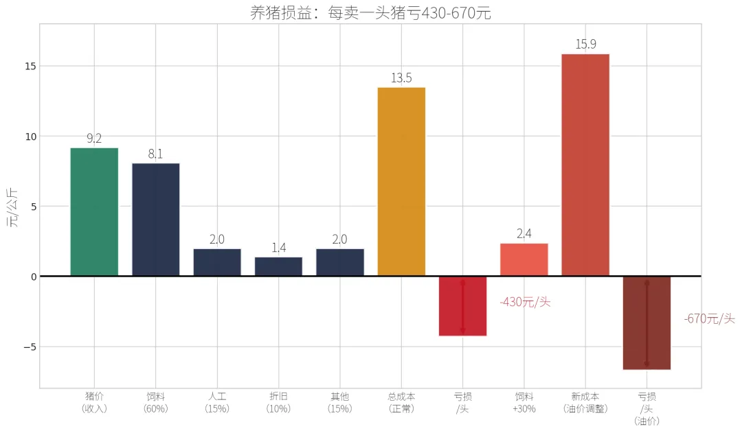 原油涨 → 运输费涨 → 化肥涨 → 粮食涨 → 饲料涨 → 养猪成本涨