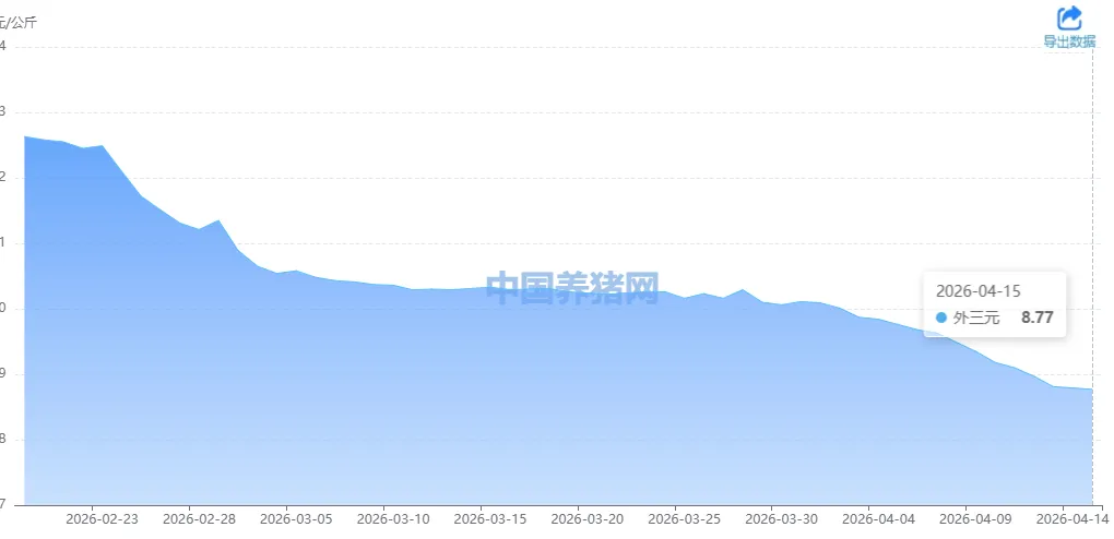 截至4月15日,全国生猪价格为8.77元/公斤,折合每斤约4.39元,继跌破10元、9元两个关口后,这个数字已创近二十年新低。