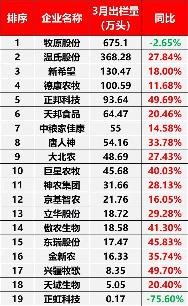 19家上市猪企的一季度出栏量,合计超4757万头,同比增长6.92%,虽然涨幅较去年有所回落,但依然还是在增长。?