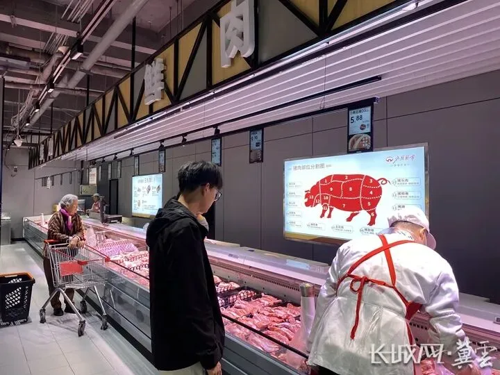 在生鲜区猪肉柜台前,悬挂着醒目的价格牌。“老百姓选购最多的就是精选猪后腿肉和猪肉后座,其中猪肉后座每斤只要5.88元,比半个月前降了两块多。”北国超市益元店营销科科长狄君山说。