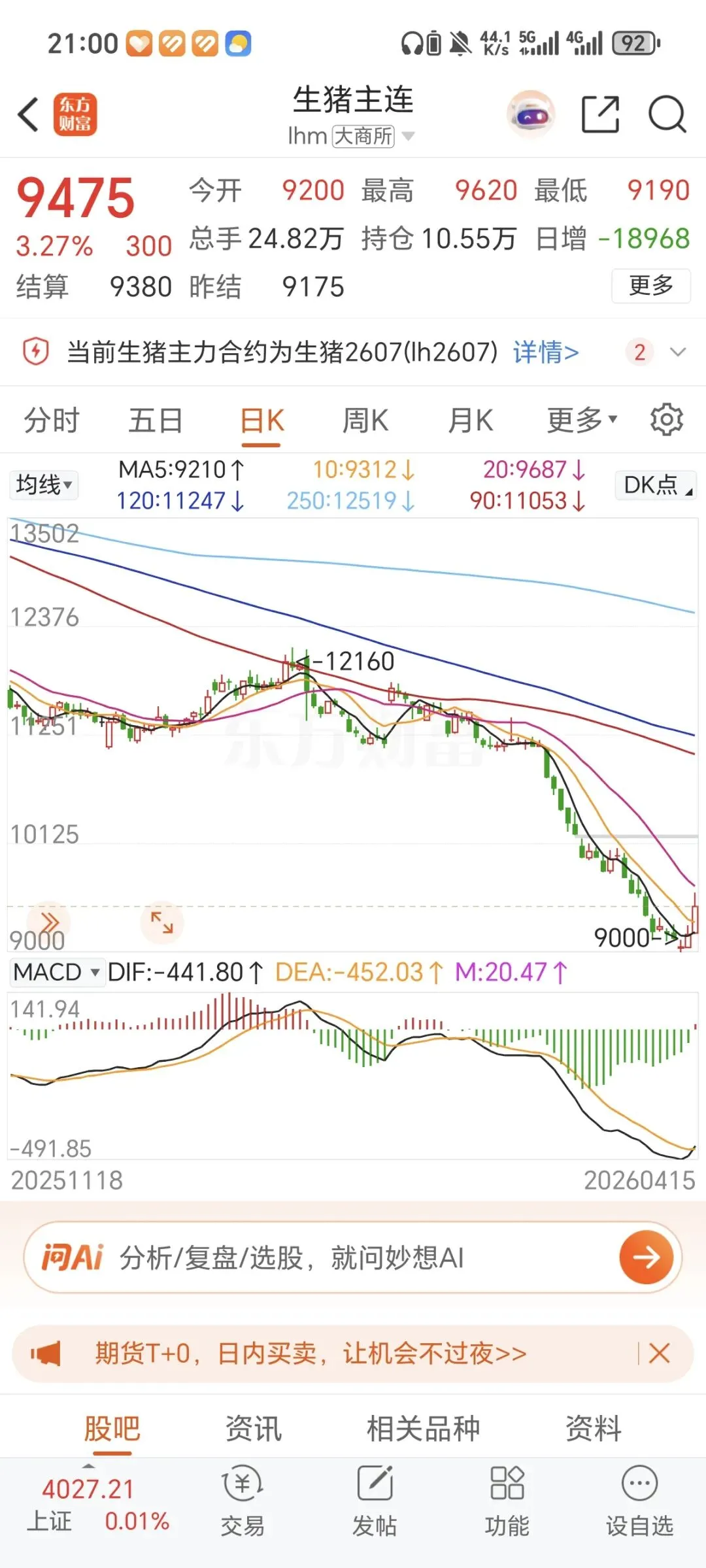 生猪价格跌到9000元每吨仿佛被一只无形的大手紧急拉起,具体的分析要放在朋友圈,总之不可高兴太早,还是那俩字“做T”
