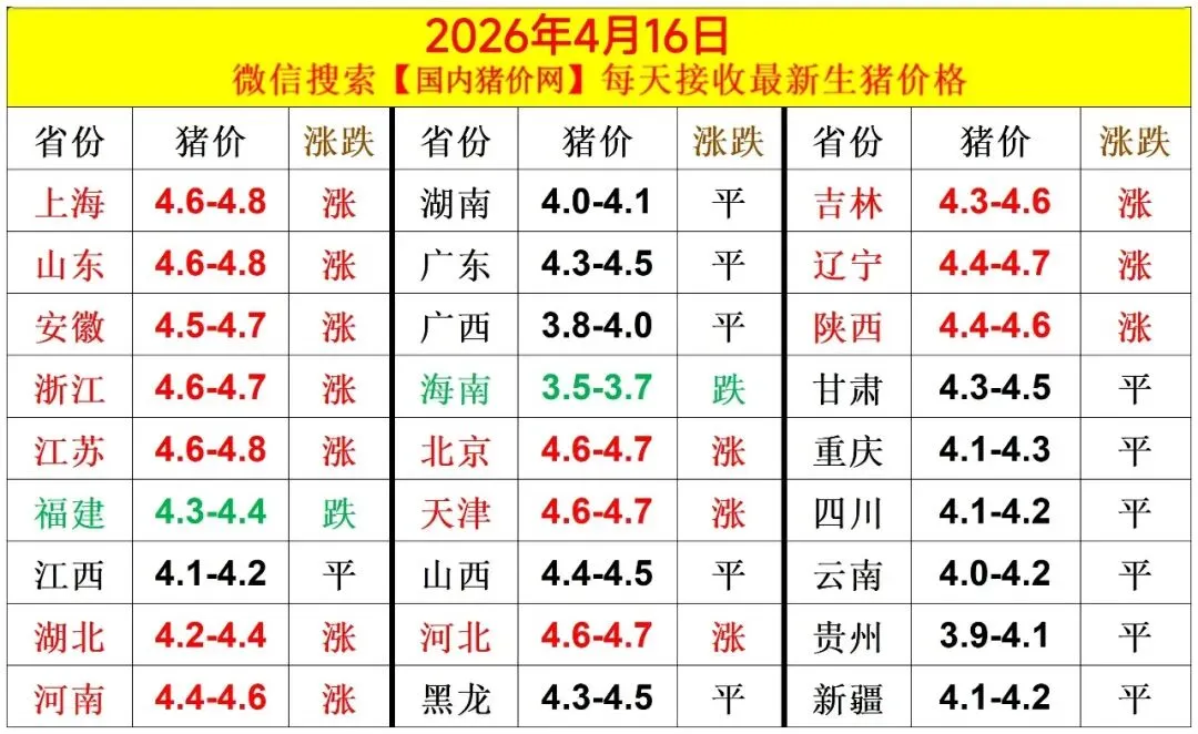 2026.4.16-明日猪价【大面积上涨】—欢迎转发,转发!