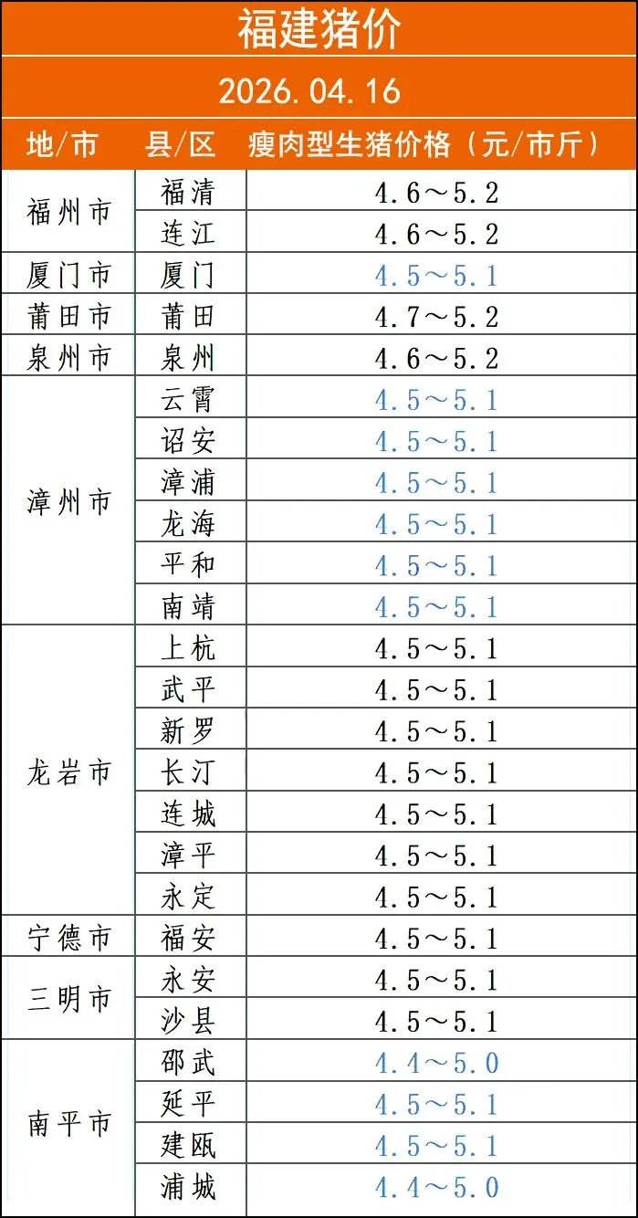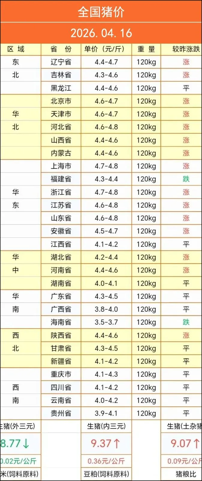 每日猪价——2026年04月16日 养羊网 2026-04-16 每日猪价——2026年04月16日报价仅供参考,请以各地实际成交价为准! 养羊网 2026-04-16 上一篇:广西涨:4月16日广西鸡蛋价格参考 下一篇:【今日猪价】4月16日 全国黑猪价格 您可能还会对下面的文章感兴趣111: 相关文章 4月7日各地鸡蛋价格详 每天报鸡蛋价格,有需要的老板加群! 2025年4月13日全国各地生猪价格信息 怎么成为千万富翁?