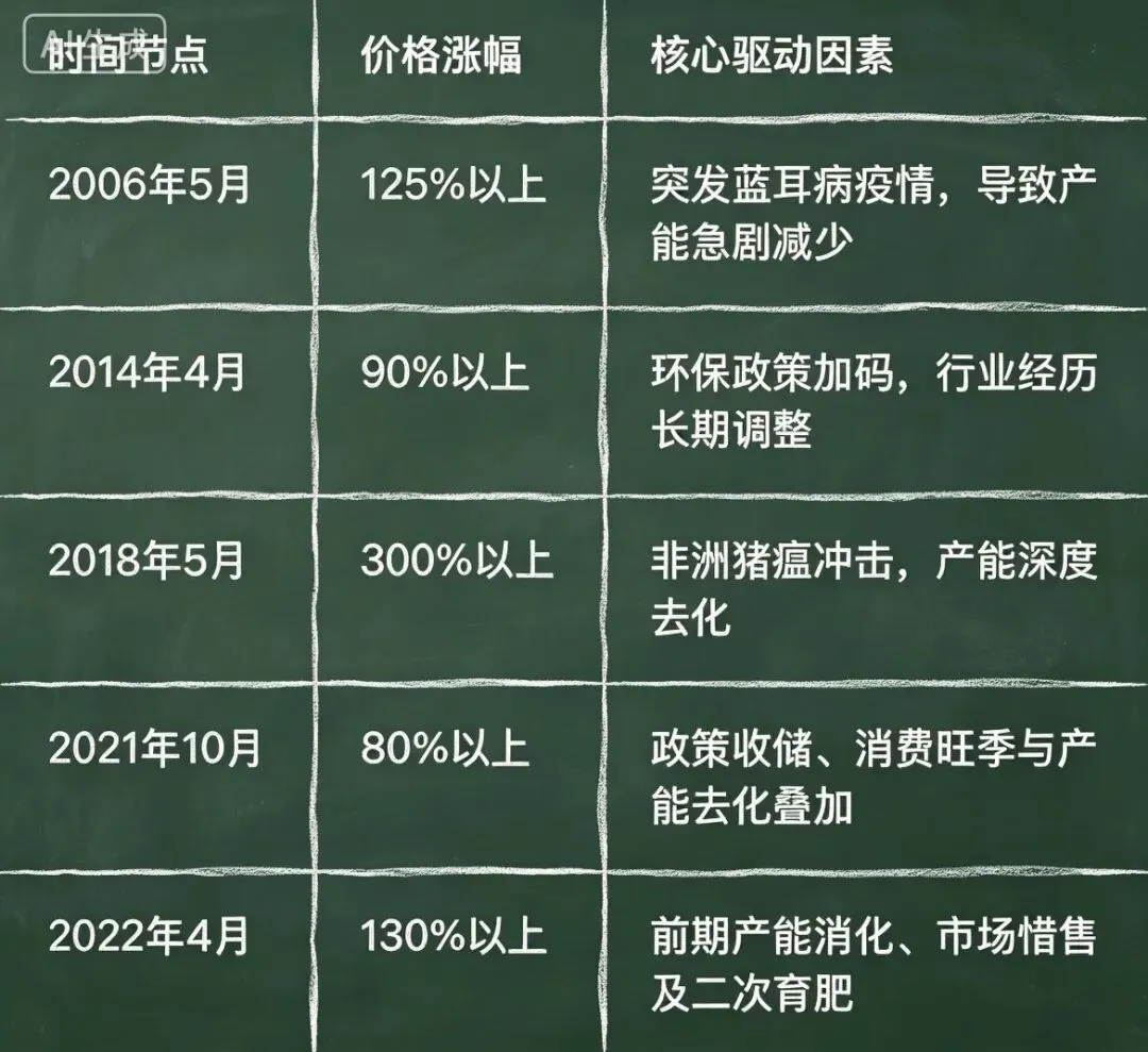 回顾近二十年国内生猪价格走势,几次显著的触底反弹行情,都深刻影响着养殖户与市场。这些波动并非偶然,其背后存在清晰的驱动主线。