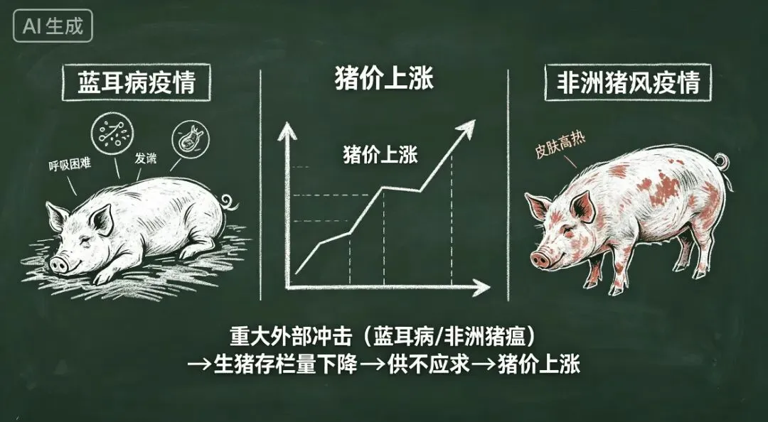 如2006年蓝耳病和2018年非洲猪瘟这类重大动物疫情,直接导致生猪供应量在短期内锐减,引发价格迅猛上涨。其中非洲猪瘟的影响最为深远,形成了罕见的“超级周期”。