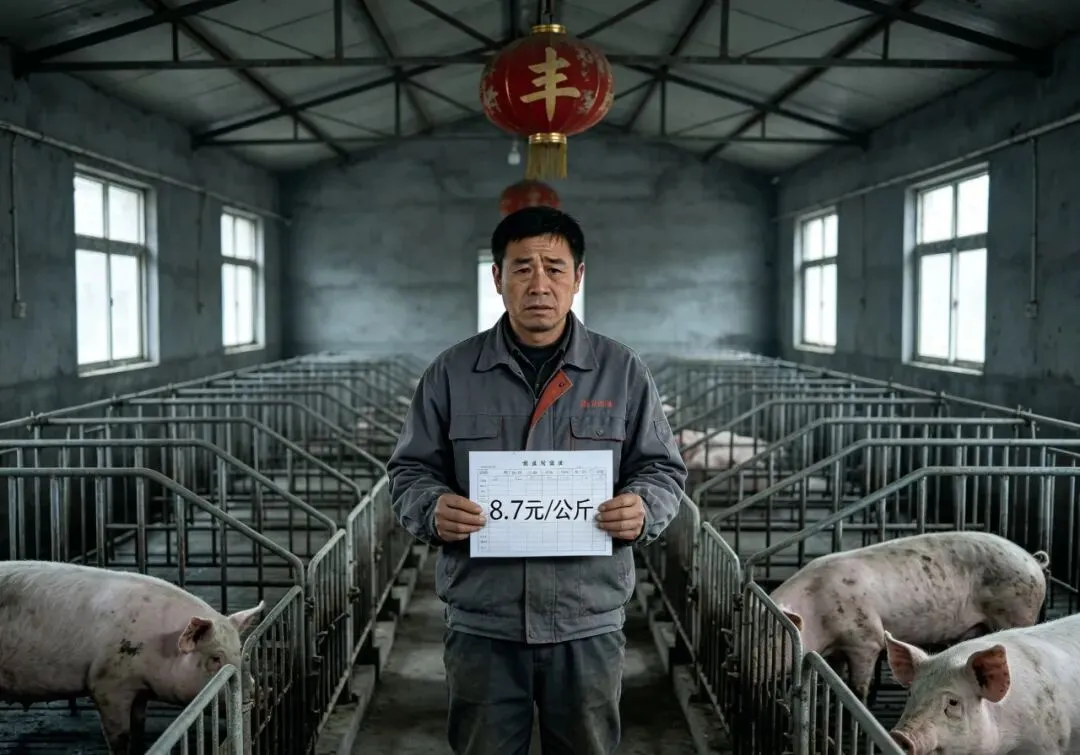 8.7元一公斤是什么概念?一头120公斤的猪,出栏只卖1044元。而牧原、温氏、新希望这些上市猪企的养殖成本,普遍在11.5-13元区间。也就是说,养一头亏一头,平均每头亏300到400元。