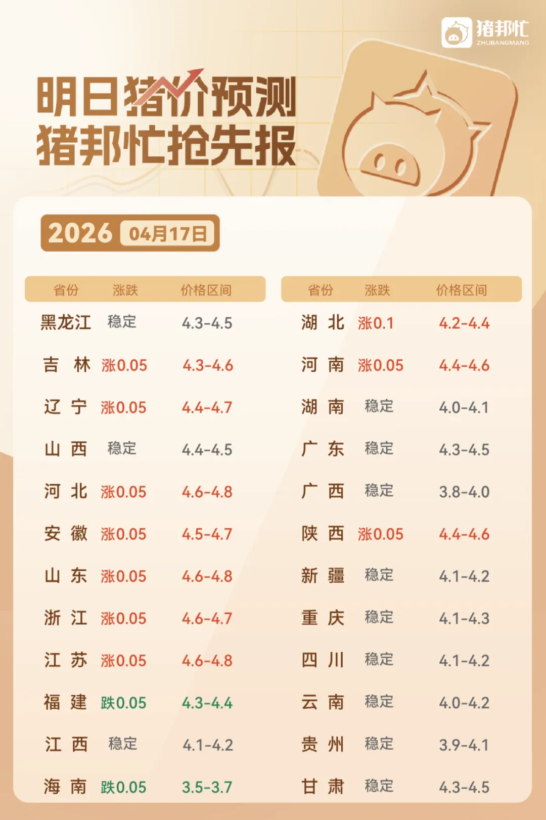 【明日猪价】2026.04.17:猪价大面积上涨!!
