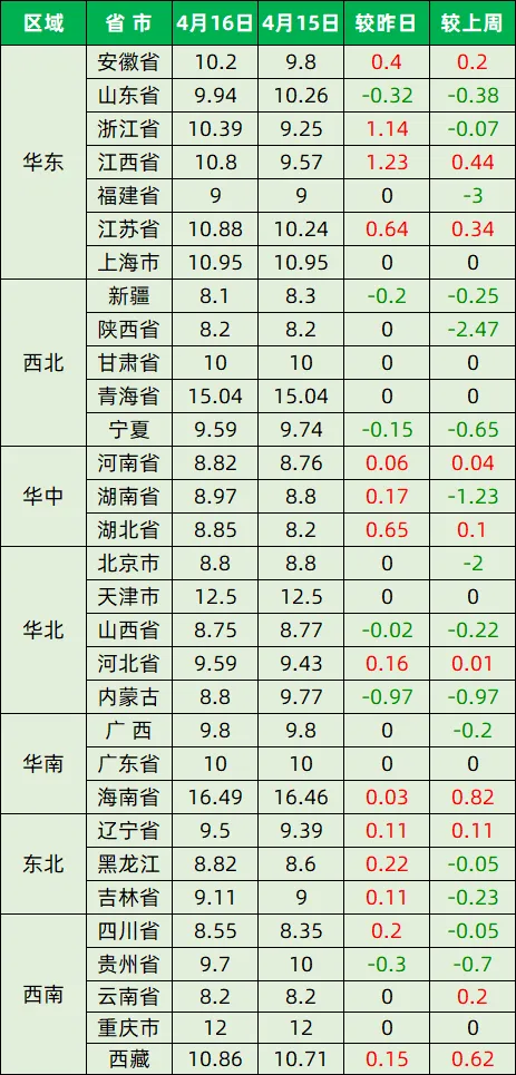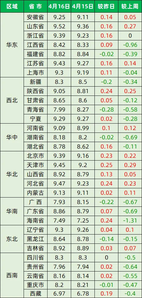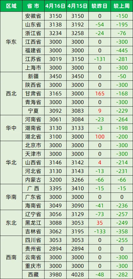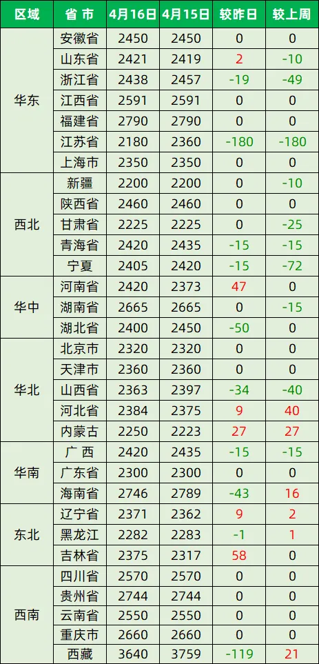 今日猪价—2026年4月16日 养羊网 2026-04-16 今日猪价—2026年4月16日全国外三元生猪价格全国内三元生猪价格全国玉米价格行情全国豆粕价格行情数据来源:互联网 养羊网 2026-04-16 上一篇:每日猪价【2026.4.16】 下一篇:今日猪价 | 4月16日生猪价格 多地上涨!! 您可能还会对下面的文章感兴趣111: 相关文章 在美国有养牛羊的家人们来!山羊架免费领取 #超市鸡蛋又便宜了,没人买。汤圆4元/斤。 猪价继续涨!明日全国生猪行情! 2025年5月15日全国各地生猪价格信息