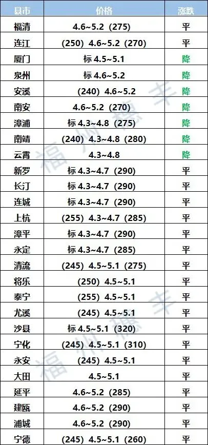 福建省生猪价格