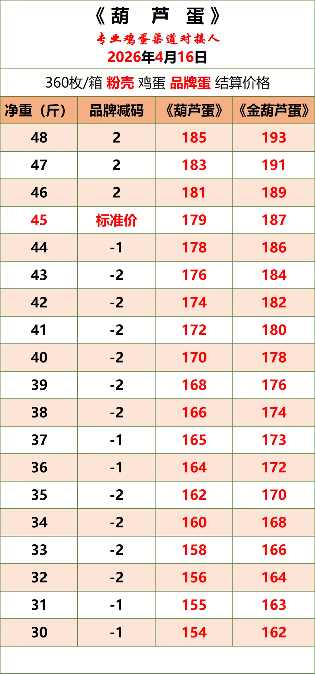2026年4月16日《葫芦蛋》鸡蛋价格
