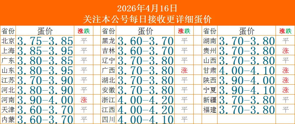 今日鸡蛋价格行情(2026年4月16日涨价)蛋价未来15天预测