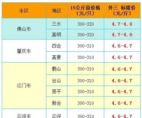 | 华南 | 广东 | 4.4~4.6 | 110kg | 涨 |