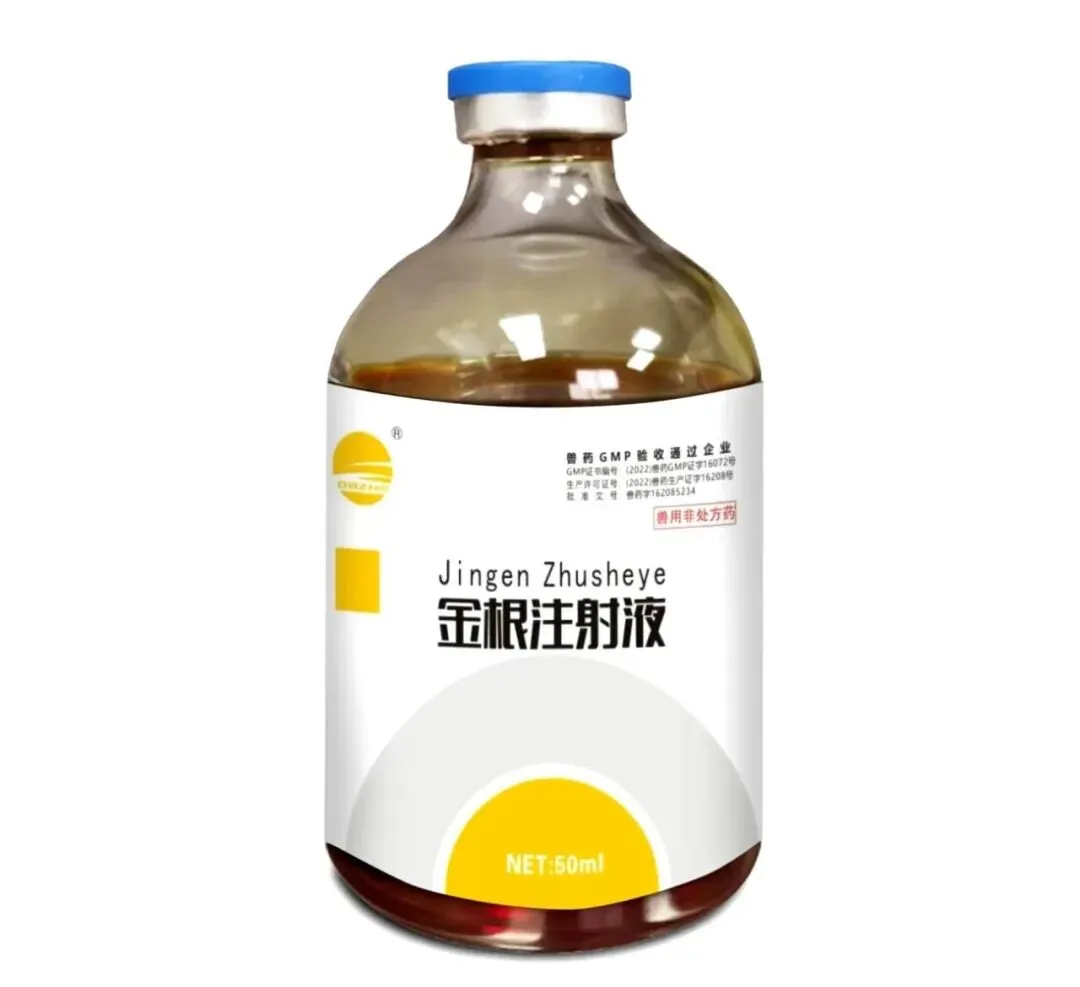 2、产后三联症治疗:当母畜出现乳腺炎、子宫内膜炎等疾病时,可使用金根注射液进行治疗。这些病症通常与感染和炎症有关,而金根注射液的成分具有抗菌消炎的作用。