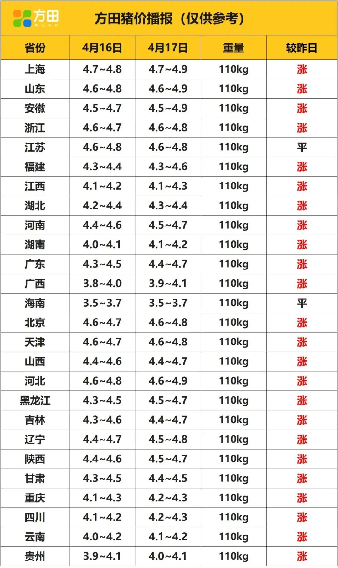 猪价丨4月17日 明日猪价早知道 养羊网 2026-04-16 猪价丨4月17日 明日猪价早知道 养羊网 2026-04-16 上一篇:2026年4月18日~4月20日!全国猪价! 下一篇:猪价底部回涨!2026.04.17鼎王猪价播报早知道! 您可能还会对下面的文章感兴趣111: 相关文章 美国现在鸡蛋价格 一张图了解三大猪企 羊各种不食治疗思路汇总 猪王:牧原股份(一)