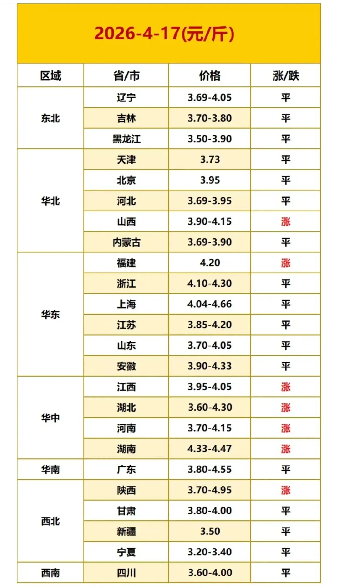 2026年4月17日全国鸡蛋价格最新走势 ? ? ? 全国鸡蛋最新价格参考: