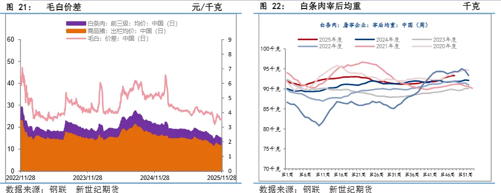 但问题在于,下游白条肉价格也在同步下跌,且跌幅往往更大。