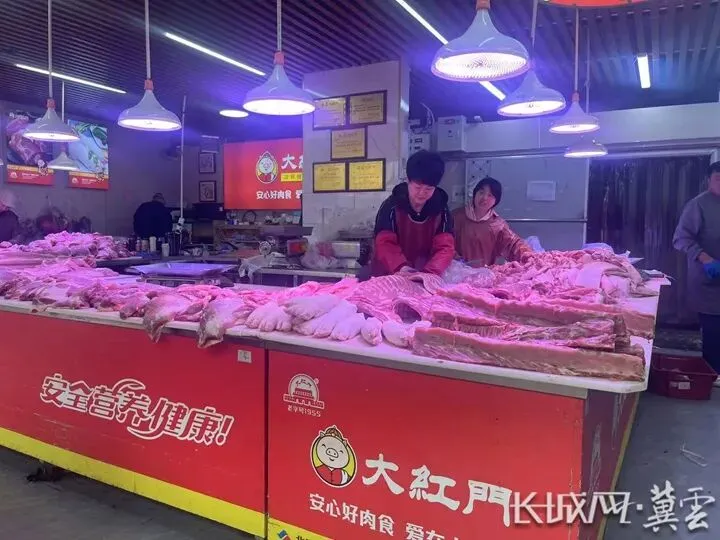 石家庄国际农产品交易中心大红门冷鲜肉店正在售卖猪肉。长城网·冀云客户端记者 贾宏博 摄