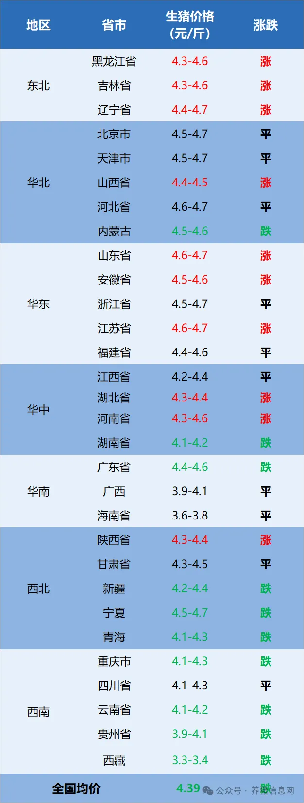 4月15日,全国外三元生猪均价为为8.66元/公斤,较昨日价格上涨0.06元/公斤。14个省份上涨,11个省份企稳,西北、华北、华中、华东地区上涨,其中华北猪价领涨全国。