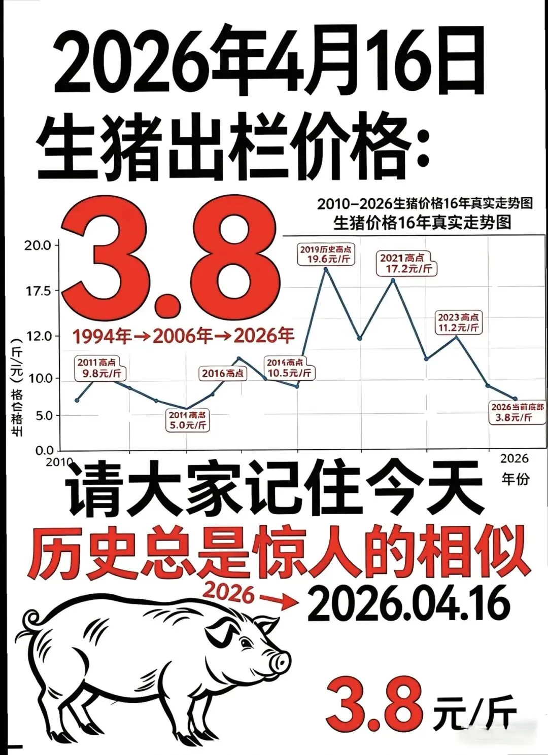 生猪价格跌破3.8元/斤,已跌至20年前水平,相比2019年高点,暴跌超80%。有人说“不就是猪周期嘛”,可这次,实在太反常了。以往猪周期,3-4年一轮回,但这次,已连跌49个月却丝毫不见反弹迹象。