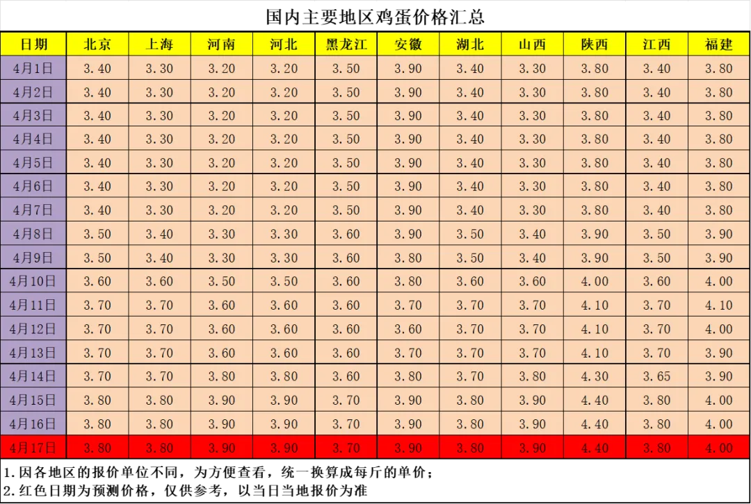 ? ? 鸡蛋预测价格仅供参考,实际价格以当地当日的报价为准。