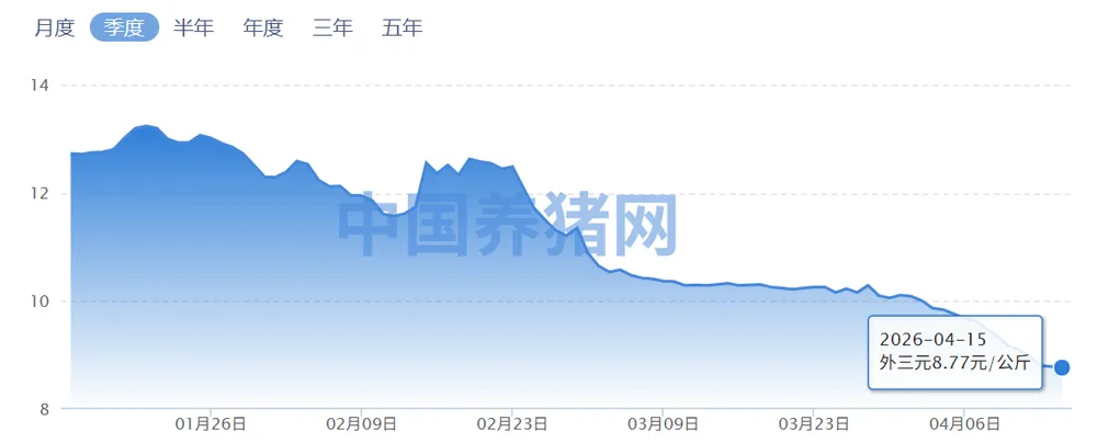 与之形成鲜明对比的是,猪价却在加速下跌。