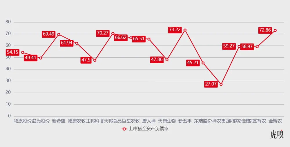 二是资金压力:资金压力越小,企业抗风险能力越强;反之,一旦猪企资金链趋紧,不仅扩张能力受限,基本的经营存续都会面临压力。而衡量资金压力的一个直观指标就是资产负债率。